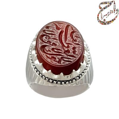 متاسفانه این محصول در حال حاضر موجود نیست . در صورت پسندیدن نوع و رنگ سنگ ، متن حکاکی ، سبک و شیوه ی طراحی و حکاکی و همچنین مدل رکاب ، میتوانید نسبت به سفارش ساخت انگشتری مشابه به این انگشتر توسط سایر اساتید محترم حکاک و رکاب ساز اقدام فرمایید . برای مشاهده ی تعرفه و هزینه ی ساخت انگشتر دست ساز به بخش (سفارش ساخت) مراجعه کنید . همچنین میتوانید با ارسال پیام در شبکه های مجازی با شماره ( 09190670057 ) نسبت به سفارش محصول مشابه اقدام کنید.