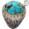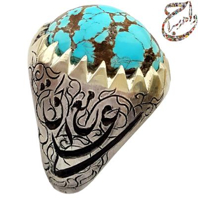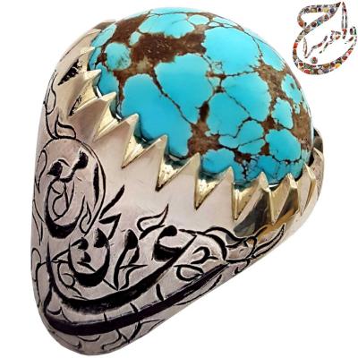 انگشتر فیروزه نیشابوری با رکاب قلمزنی استاد جنگیa459jw