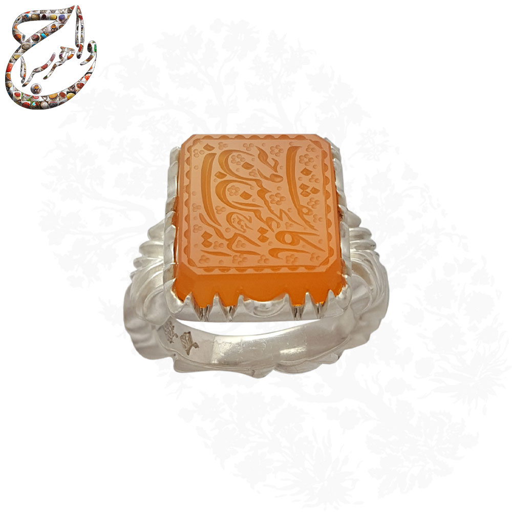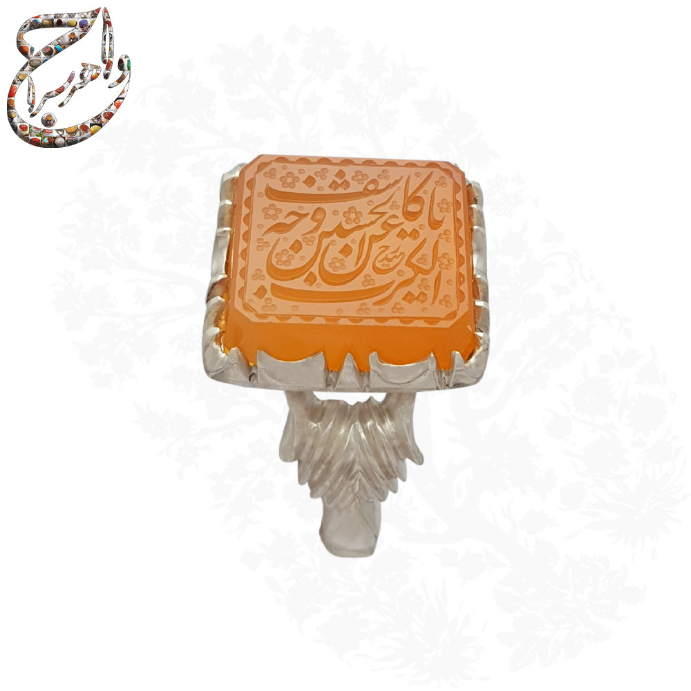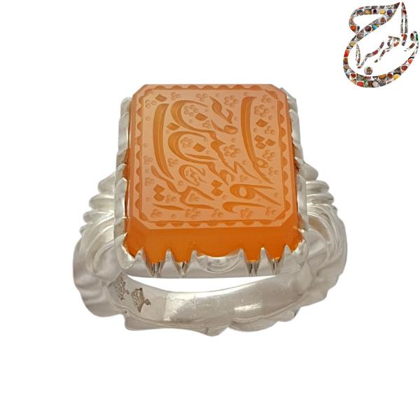 انگشتر عقیق پرتقالی خط حیدر رکاب دستساز استاد افتخاری