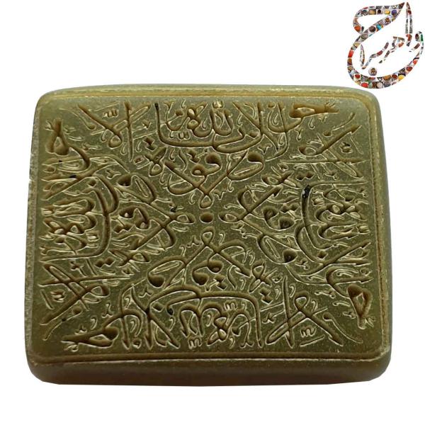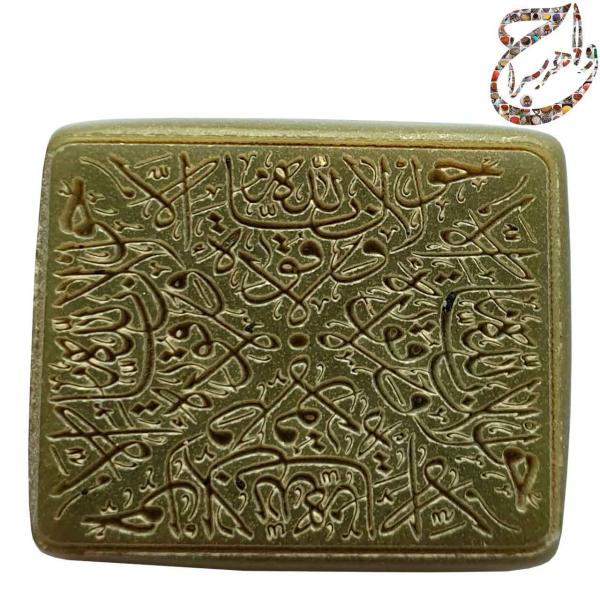 نگین با ابعاد مناسب گردنی یشم سبز خطی ، حکاکی لا حول و لا قوه الا بالله . آماده برای خرید یا سفارش ساخت گردن آویز اختصاصی اختصاصی .