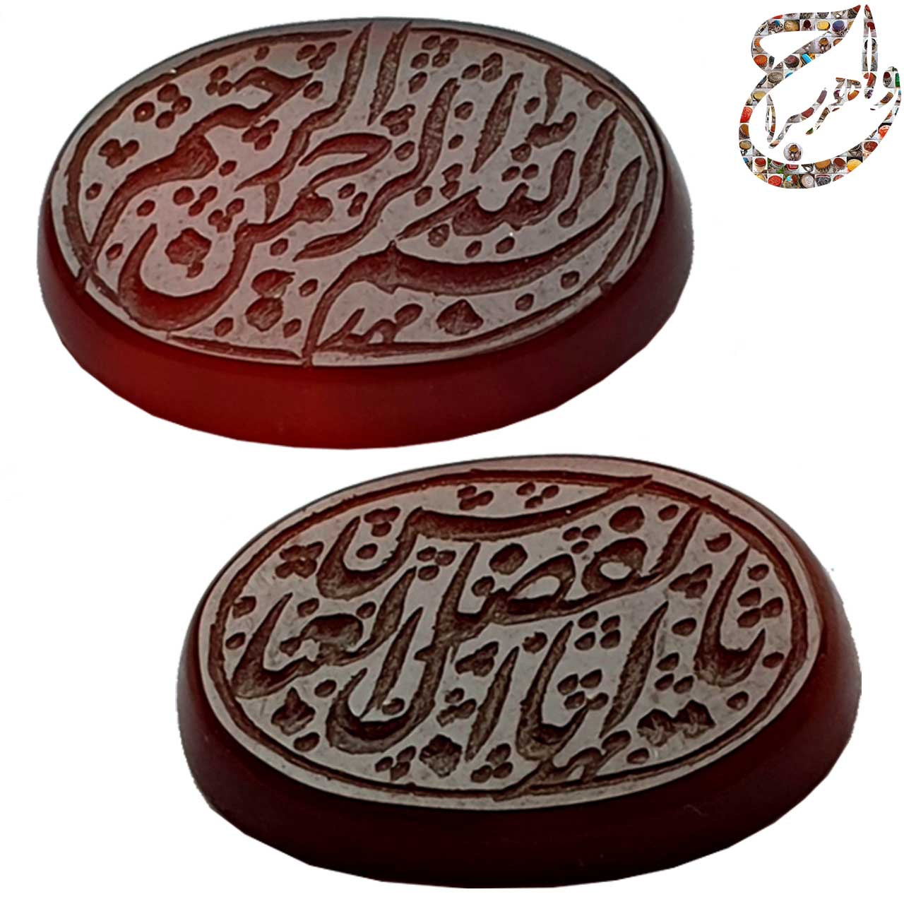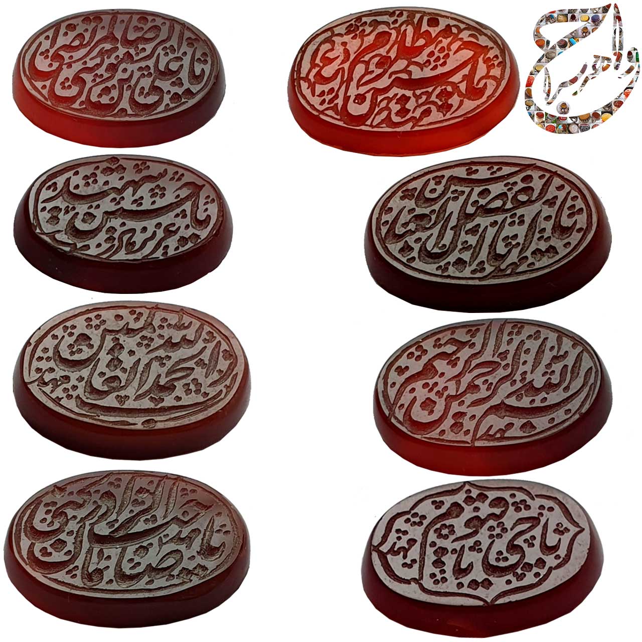 فروش یکجا هشت عدد عقیق سرخ و کبدی خطی با اذکار دو تا چهار کلمه ای با امضاء مهد مناسب جهت ساخت رکاب .