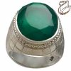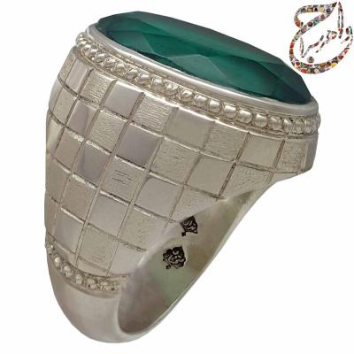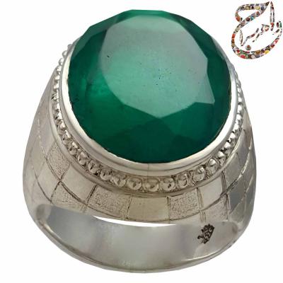 فروش انگشتر دُرّ فاطمی یا همان کوارتز سبز نایاب با رکاب نقره دست ساز استاد افتخاری با مهر تهران افتخاری در جواهرسرا