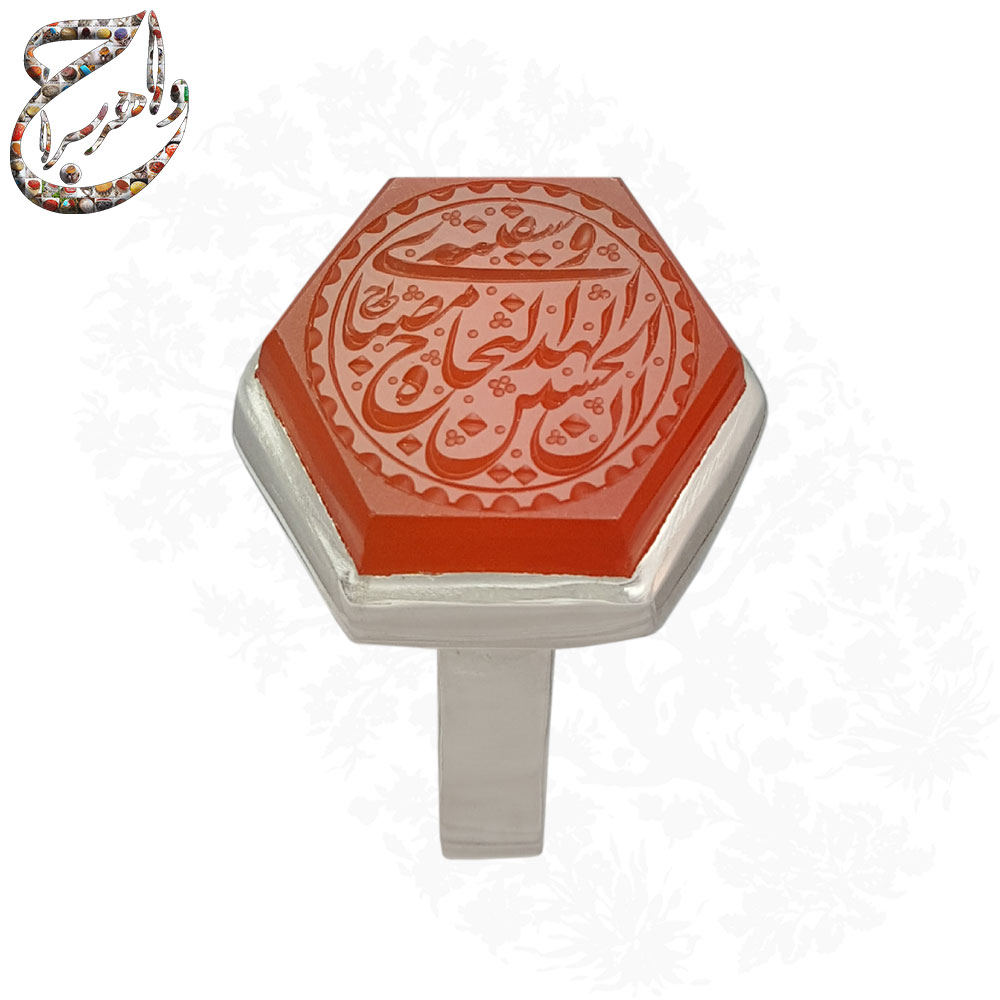 حکاکی دستی: این انگشتر به حکاکی دستی «إن الحسین مصباح ..» متبرک گشته است. حدیث گفته شده با دقت و ظرافت، توسط استاد رحمانی بر این سنگ حک شده است.