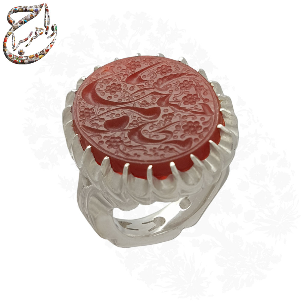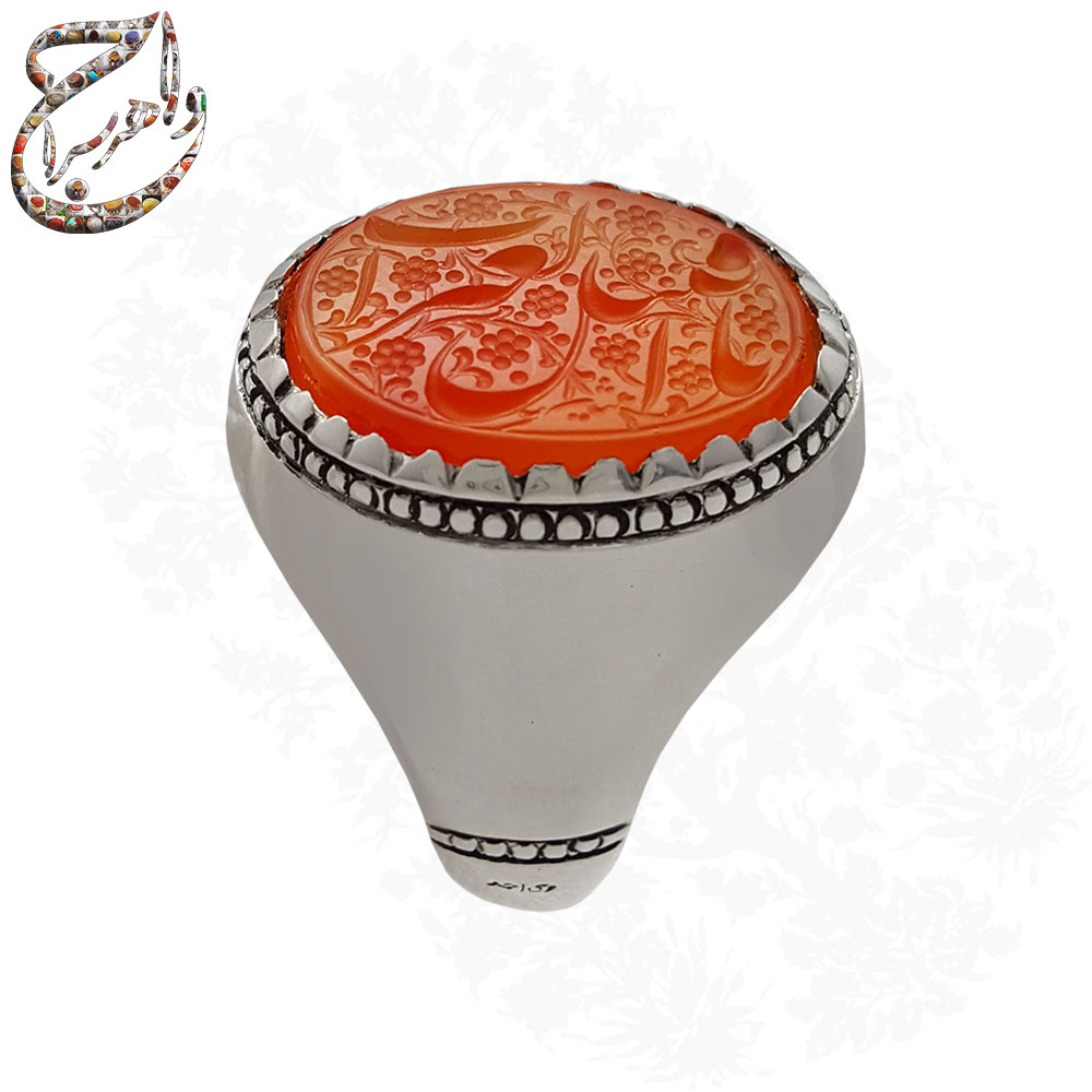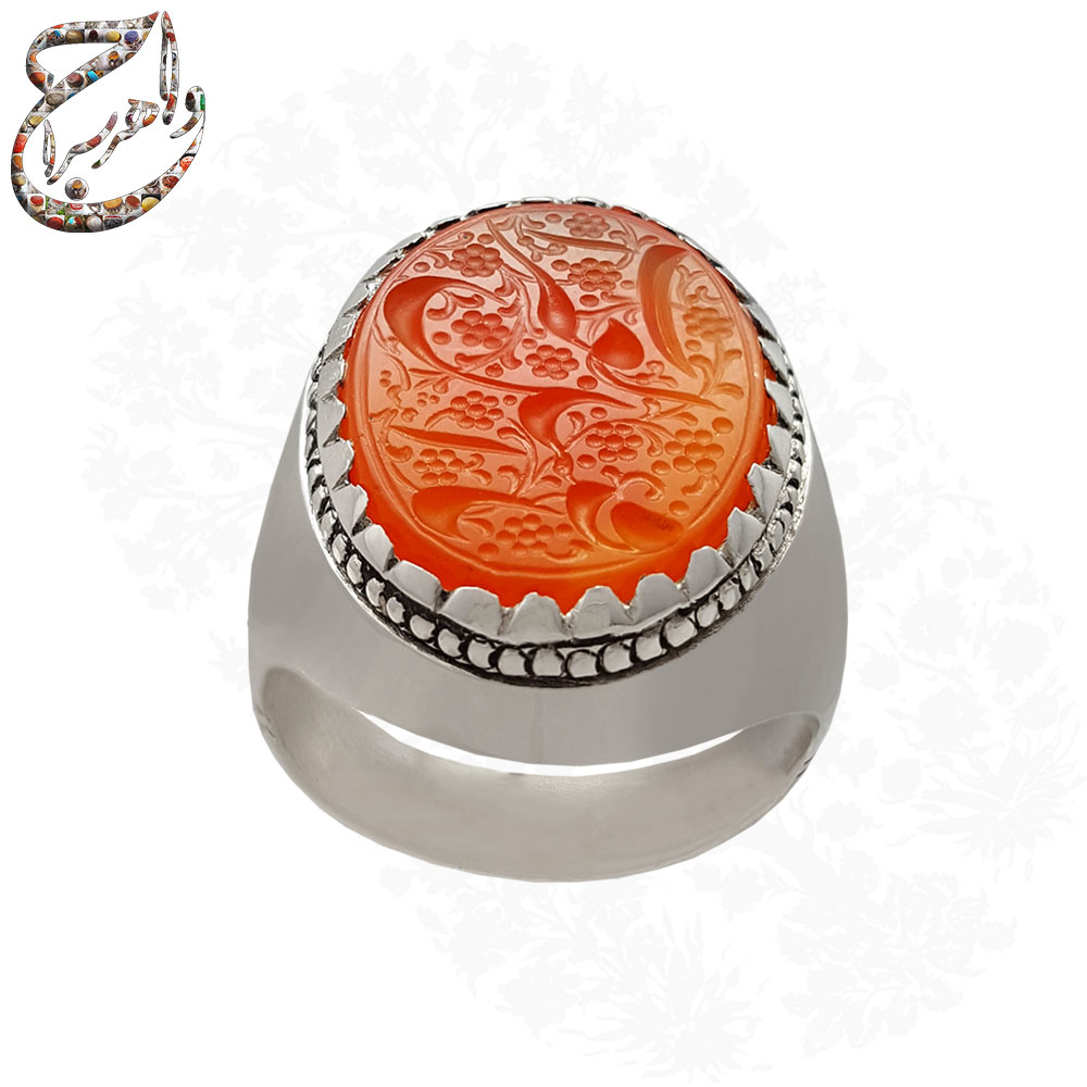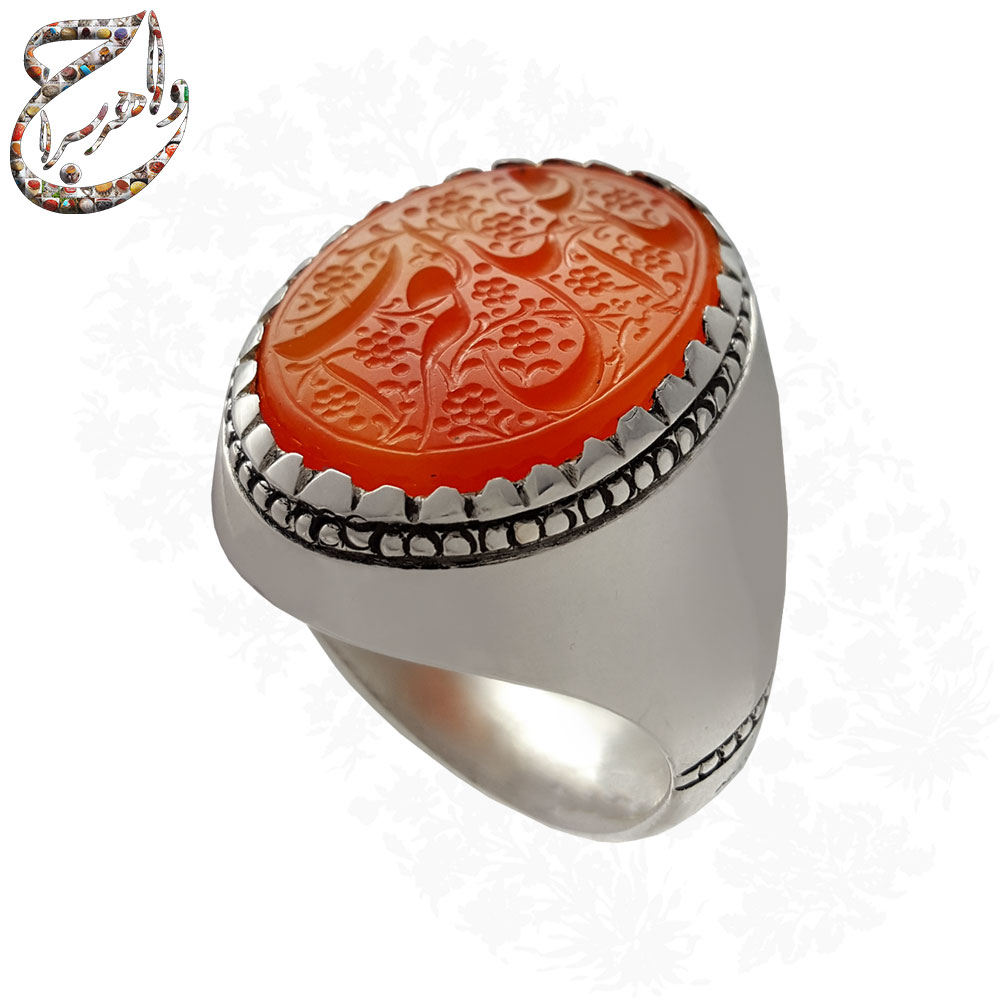انگشتر عقیق پرتقالی خراسانی ذکر (یا قتیل العبرات) با رکاب ری احمدa575jw