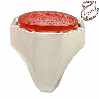 این انگشتر در حال حاضر موجود نیست . برای سفارش میتوانید پس از استعلام قیمت و پرداخت مبلغ سفارش ، حد اکثر پس از سه ماه انگشتر ساخته شده را از جواهرسرا دریافت کنید . جواهرسرا انگشتر اختصاصی شما را مطابق سلیقه تان میسازد . از اعتماد شما به جواهرسرا سپاسگزاریم . متاسفانه این محصول در حال حاضر موجود نیست . در صورت پسندیدن نوع و رنگ سنگ ، متن حکاکی ، سبک و شیوه ی طراحی و حکاکی و همچنین مدل رکاب ، میتوانید نسبت به سفارش ساخت انگشتری مشابه به این انگشتر توسط سایر اساتید محترم حکاک و رکاب ساز اقدام فرمایید . برای مشاهده ی تعرفه و هزینه ی ساخت انگشتر دست ساز به بخش تعرفه ها مراجعه کنید . همچنین میتوانید با ارسال پیام در شبکه های مجازی با شماره ( 09190670057 ) نسبت به سفارش محصول مشابه اقدام کنید .