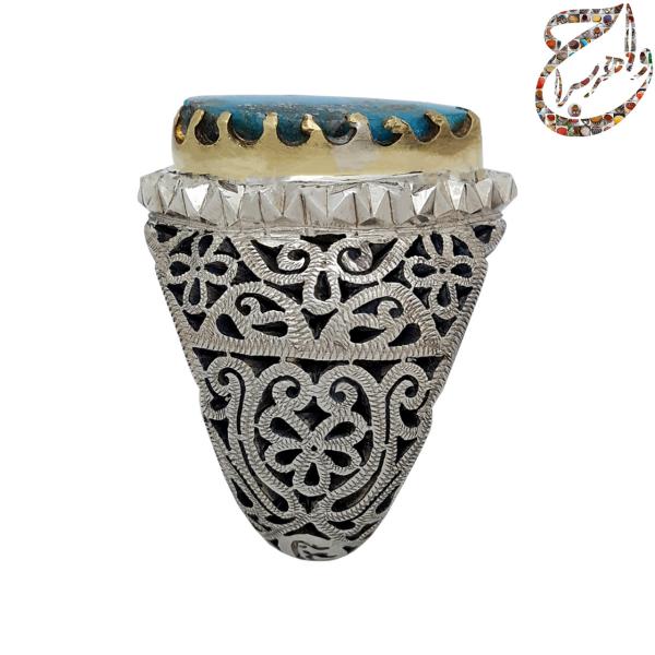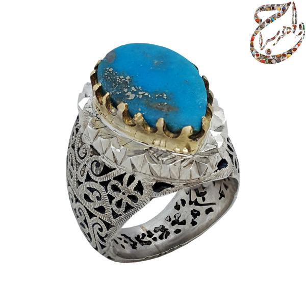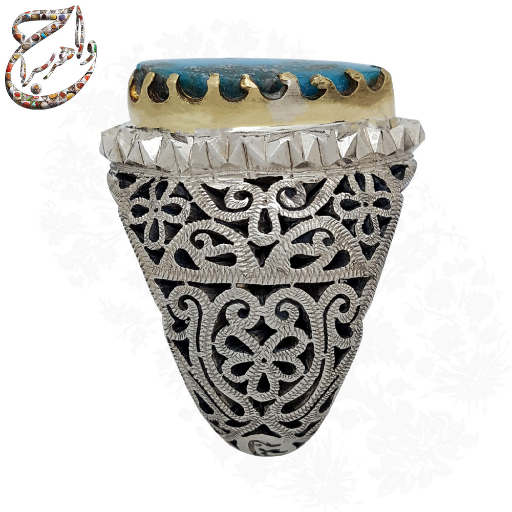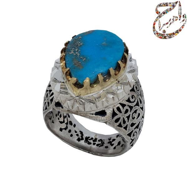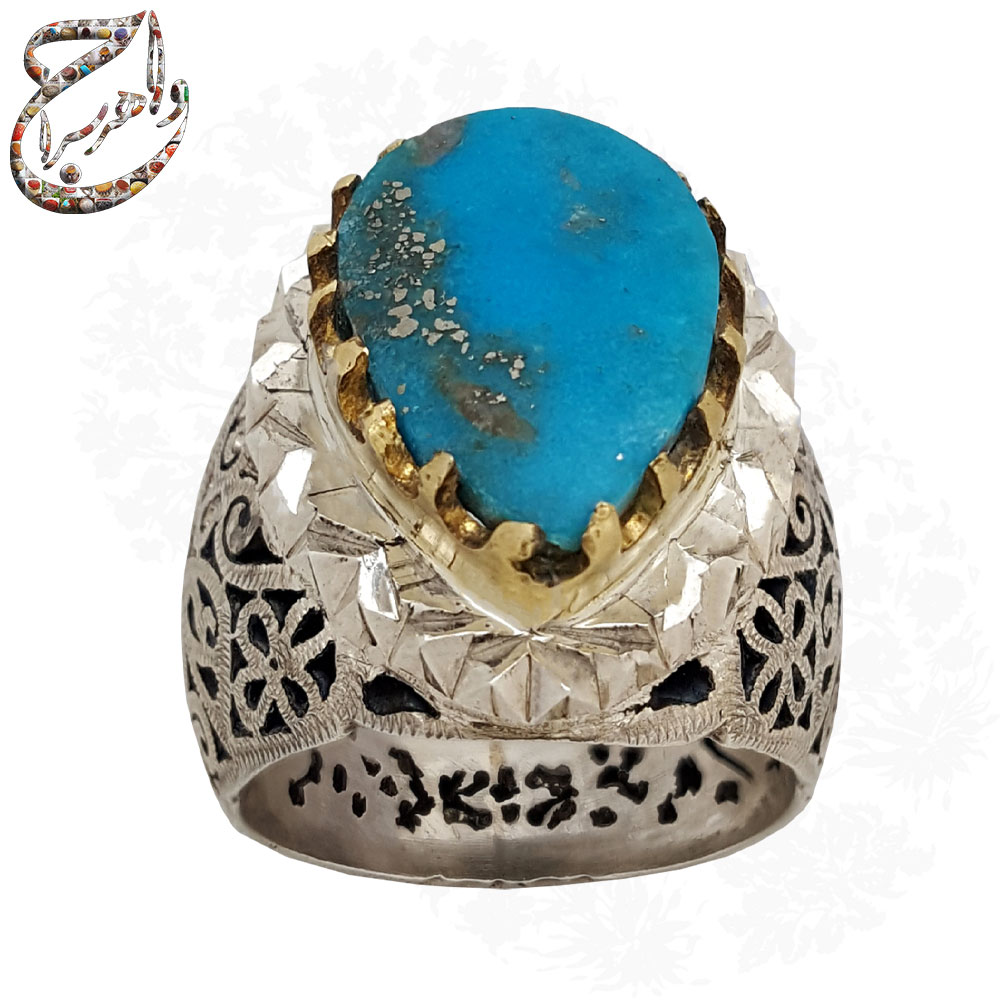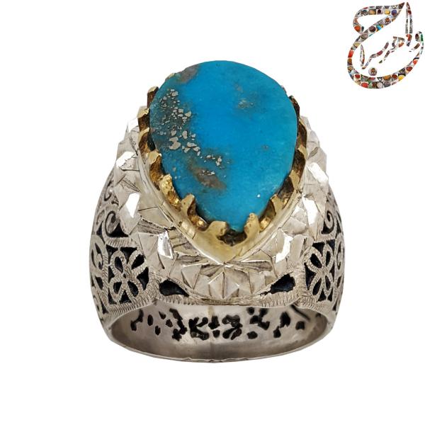 انگشتر فیروزه کرمانی تراش اشکی نقره دار با رکاب دست ساز تمام شبکه استاد ایوبی با مهر استاد در جواهرسرا فروشگاه بزرگ اینترنتی