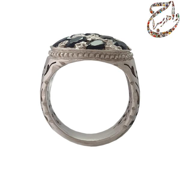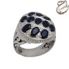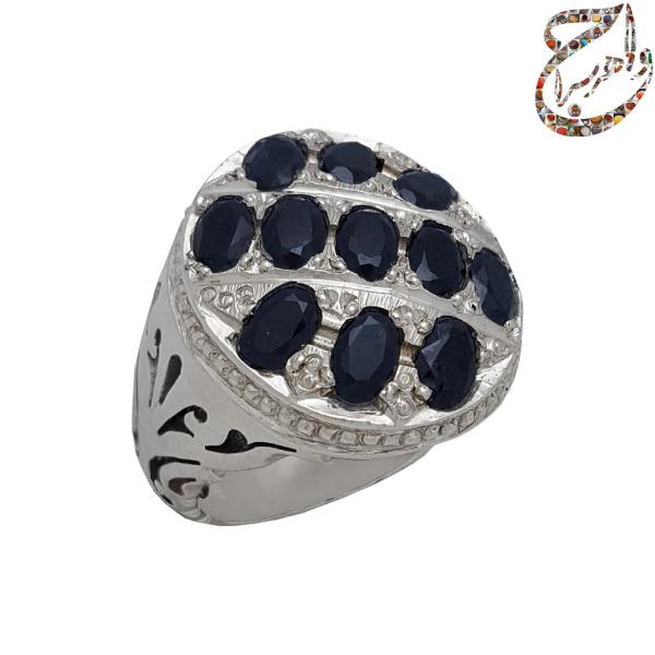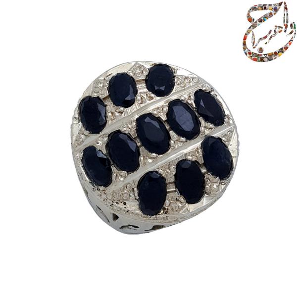 انگشتر یازده نگین یاقوت کبود اصیل معدنی با رکاب شبکه ای نقره در فروشگاه بزرگ اینترنتی جواهرسرا