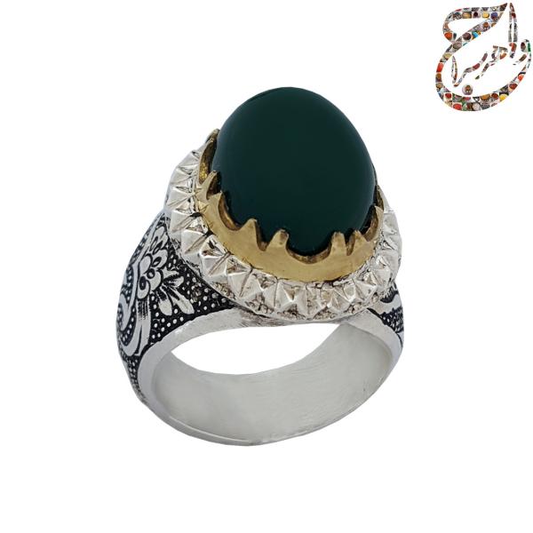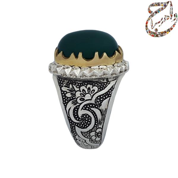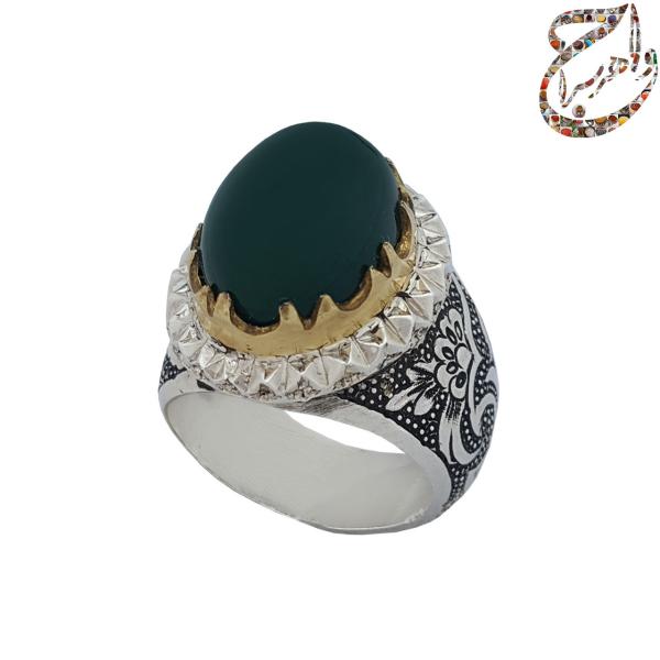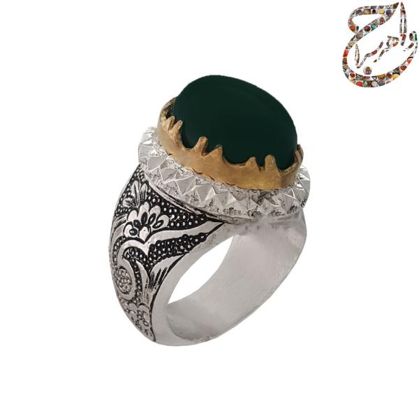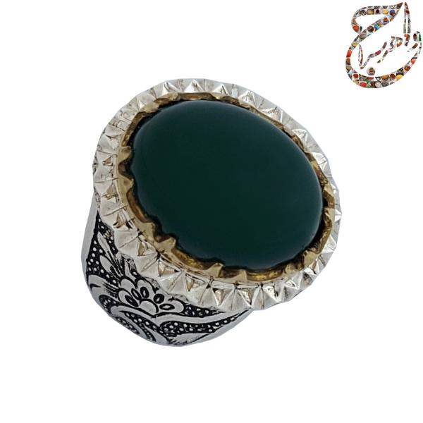 انگشتر عقیق سبز قلمزنی دستیa585jw