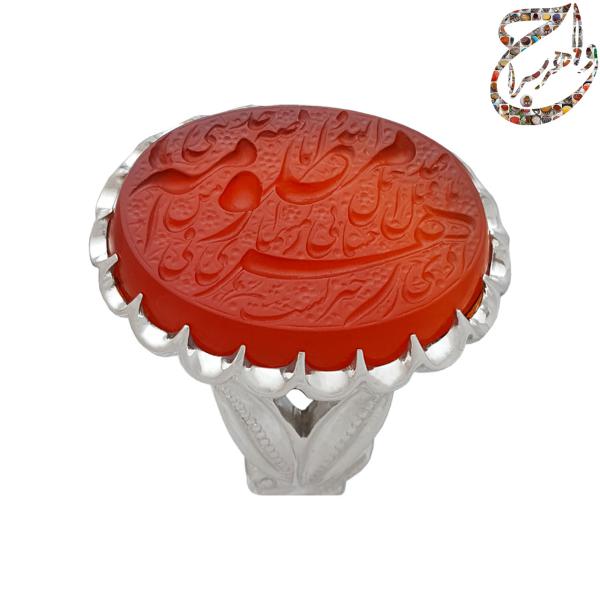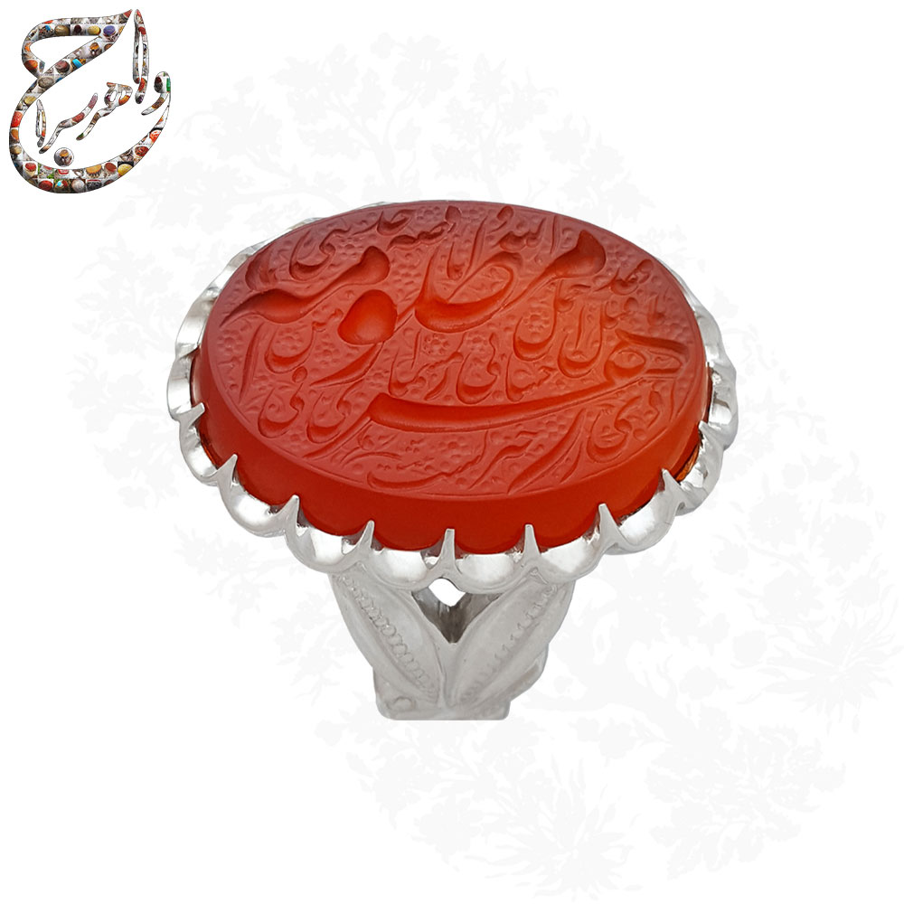 انگشتر عقیق سرخ یمنی با حکاکی «یا زهرا مظلومه (س)» خط متینa588jw
