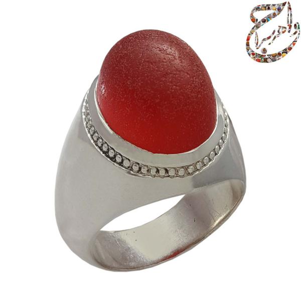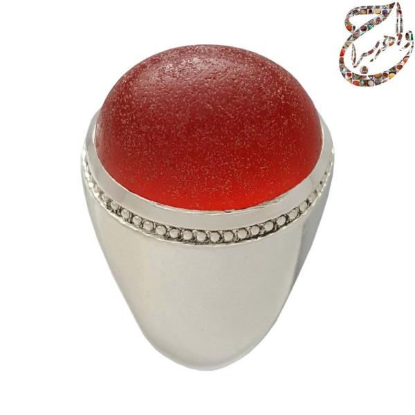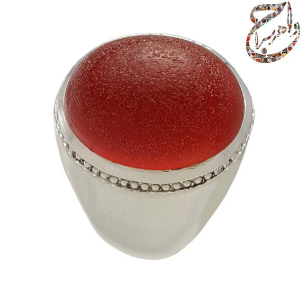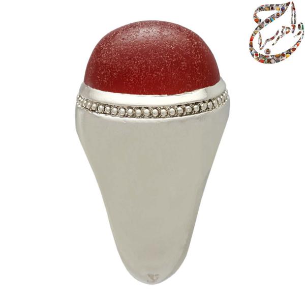 انگشتر عقیق یمنی سرخ آبدار کهنه با تراش دامله در ابعاد 18*14 و ارتفاع 9 میلیمتر از سطح رکاب