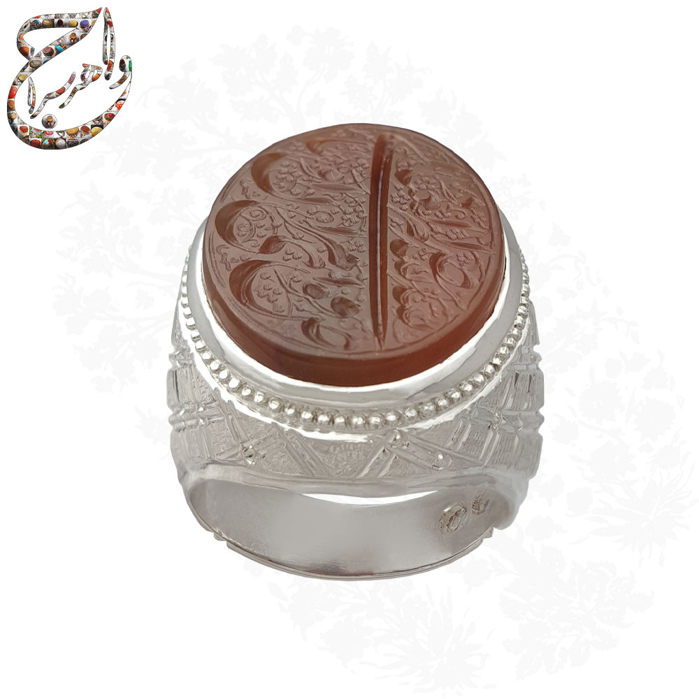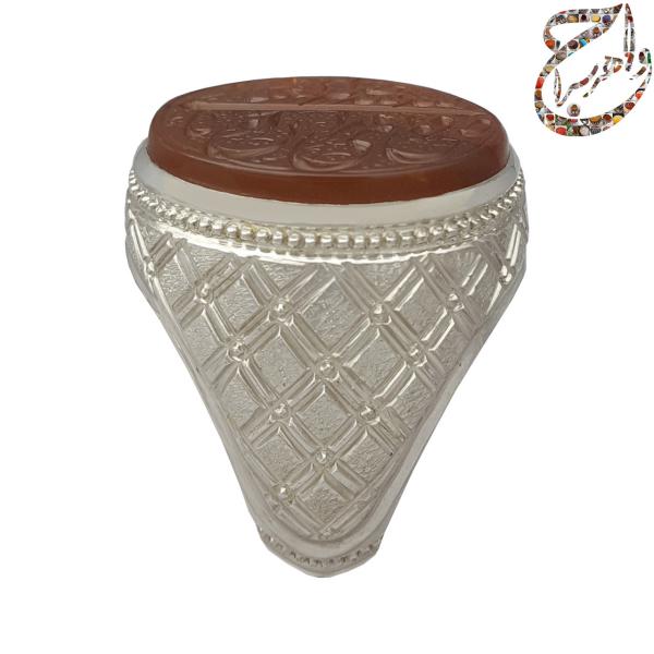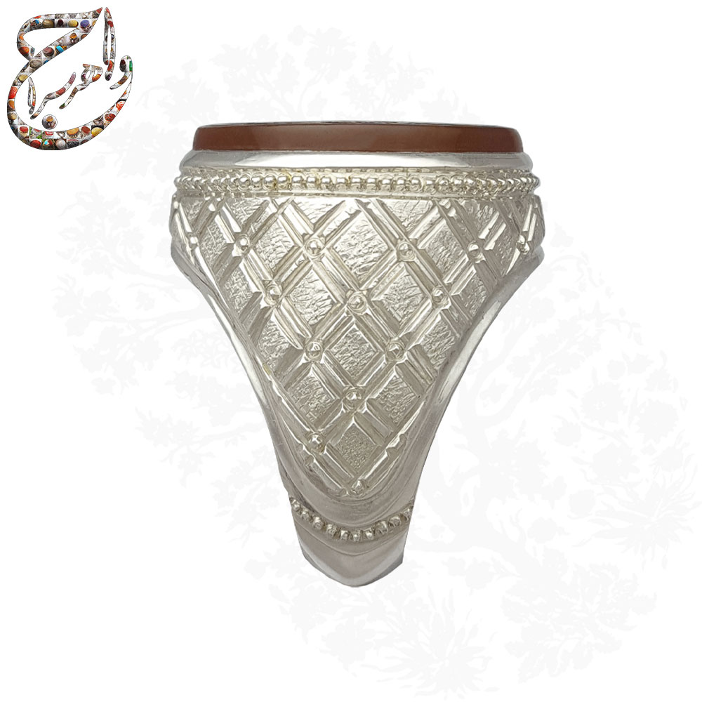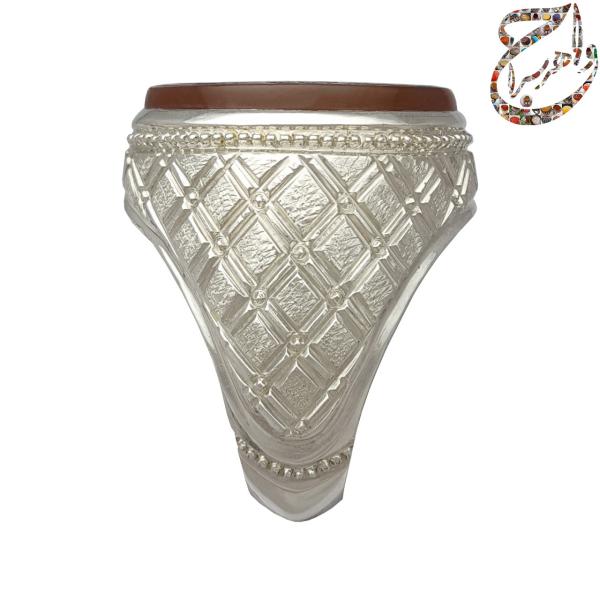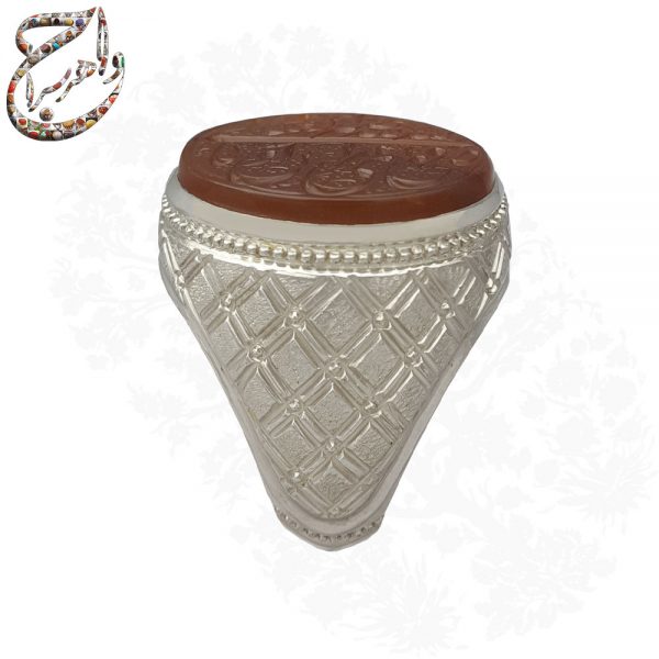 رکاب نقره دستساز: رکاب نقره این انگشتر به طریق یکتکه توسط استادکار معتبر ایرانی استاد امامی ساخته شده است، که مهر ایشان بر این رکاب، دوام بالا و هویت اصیل محصول را تضمین میکند.