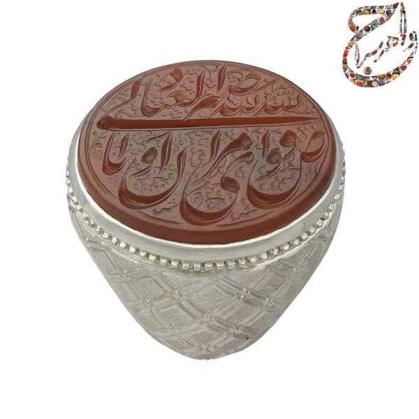 انگشتر عقیق یمنی اعلاء خطی حکاکی استاد شمس رکاب استاد امامی