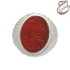 انگشتر فاخر عقیق پرتقالی یمنی آبدار حکاکی استاد اصغرپور با امضاء متین رکاب نقره دست ساز شاهکار استاد امامی رفع الله رایه العباس