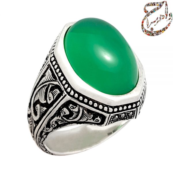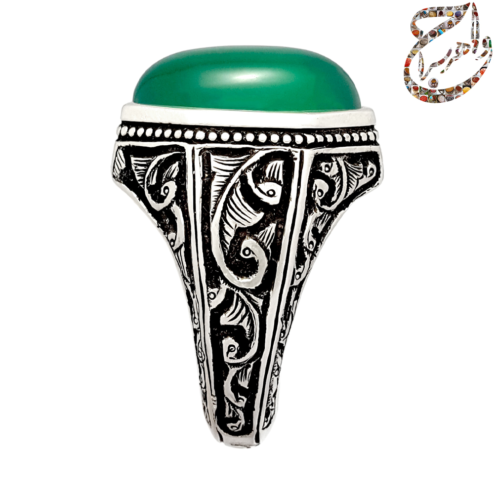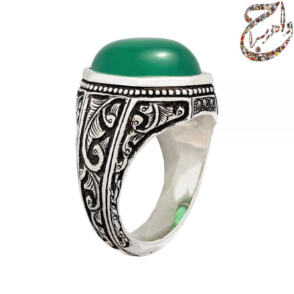انگشتر عقیق سبز آبدار رکاب ابراهیمی قلمزنی ساعی