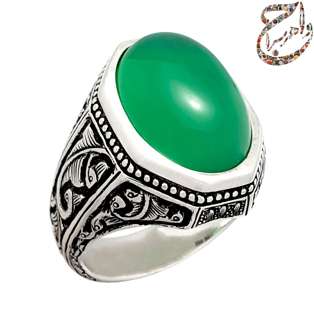 انگشتر عقیق سبز آبدار رکاب ابراهیمی قلمزنی ساعیa626jw