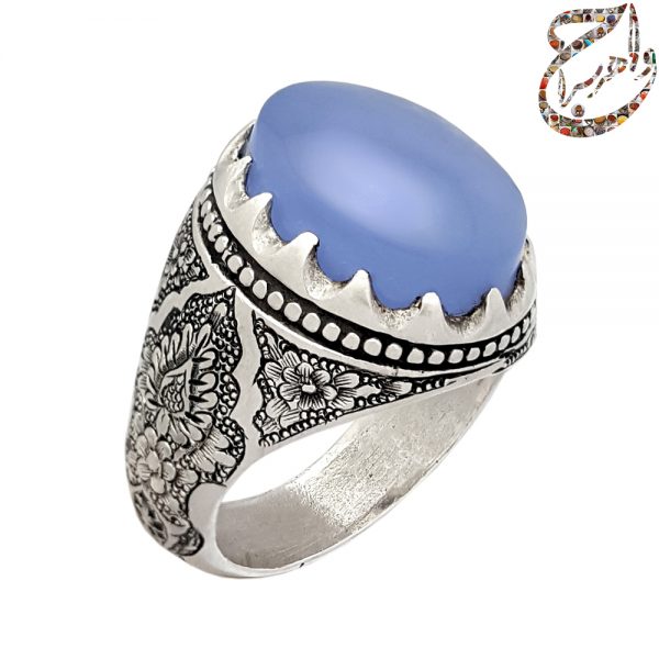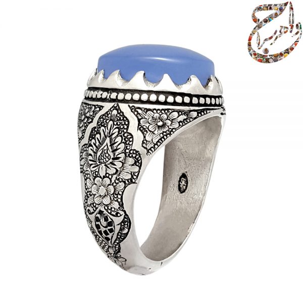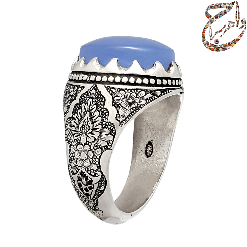 انگشتر عقیق کبود قلمزنی ساعیa628jw