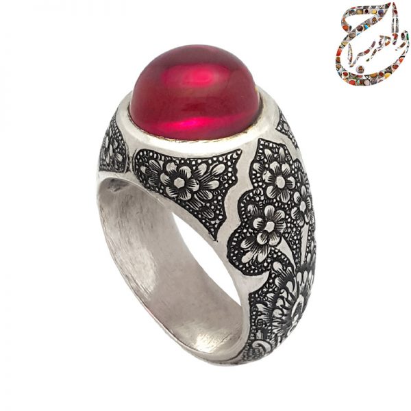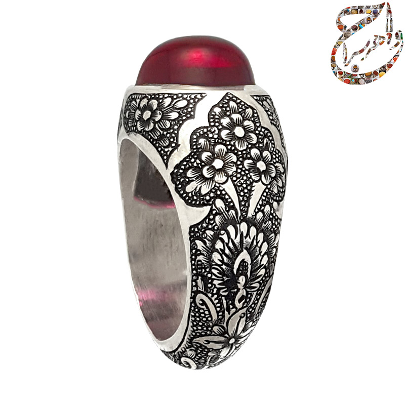 انگشتر شمش یاقوت رکاب دست ساز ، قلمزنی ساعی