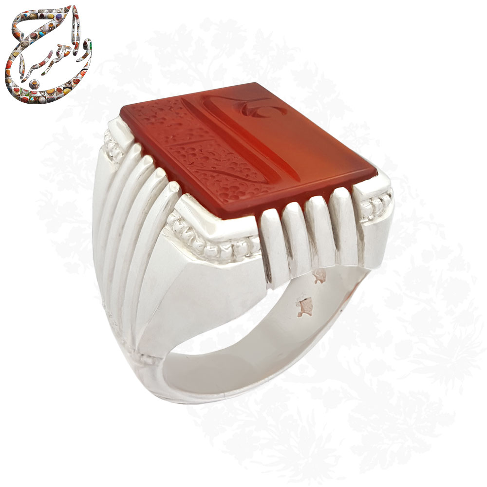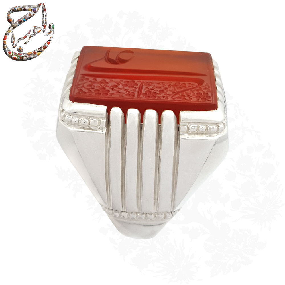انگشتر عقیق سرخ حکاکی «یا علی(ع)» خط حم رکاب استاد افتخاریa659jw