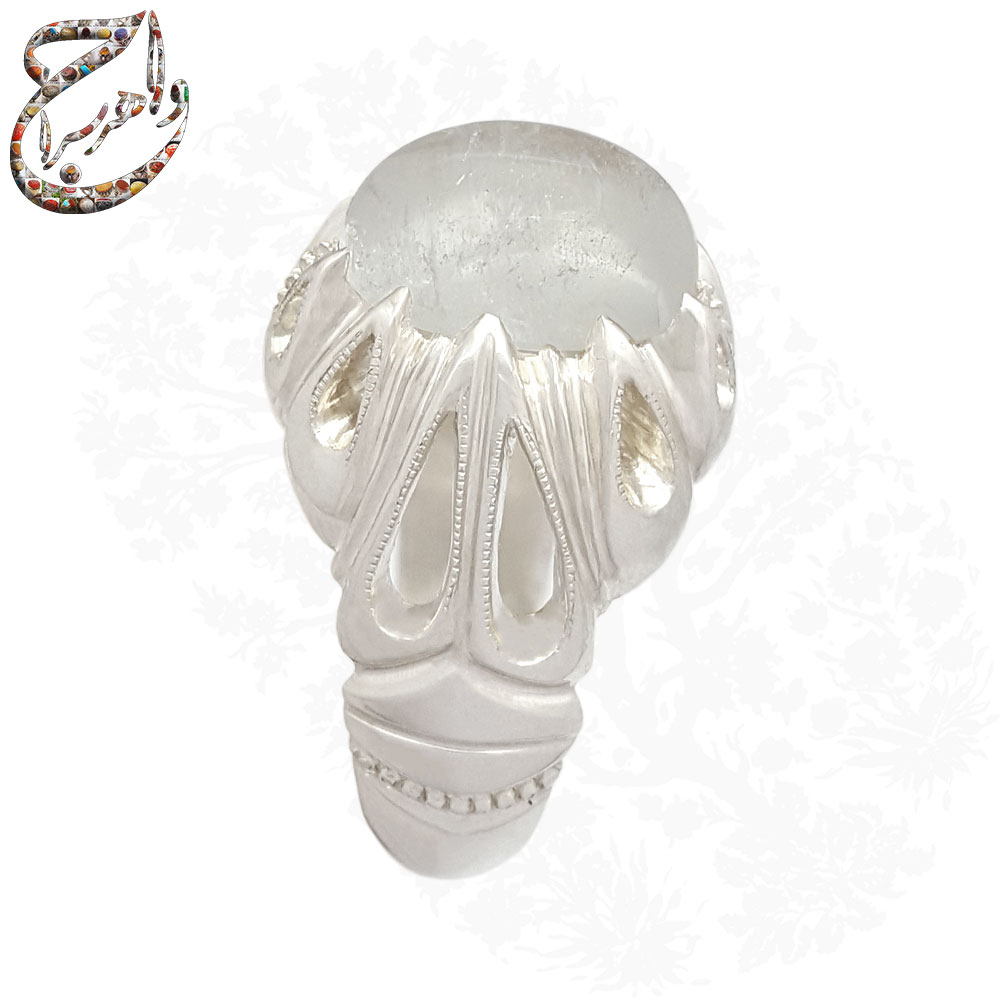 سنگ درّ نجف به کاربرده شده در این ست یکی از انواع سنگهای محبوب و با شفافیت بالا و از نوع شیشهای بی رنگ است. درّ نجف اصیل این انگشترها بصورت دامله تراش خورده است که سبب جلوهای چشمنواز ودیدنی میگردد. این نوع از تراش نگین، سطحی محدب بوجود آورده و اصالت و طبیعت سنگ را بیشتر به رخ میکشد. سنگ درّ انگشتر زنانه 9*11 میلیمتر بوده و انگشتر مردانه 11*15 میلیمتر است.