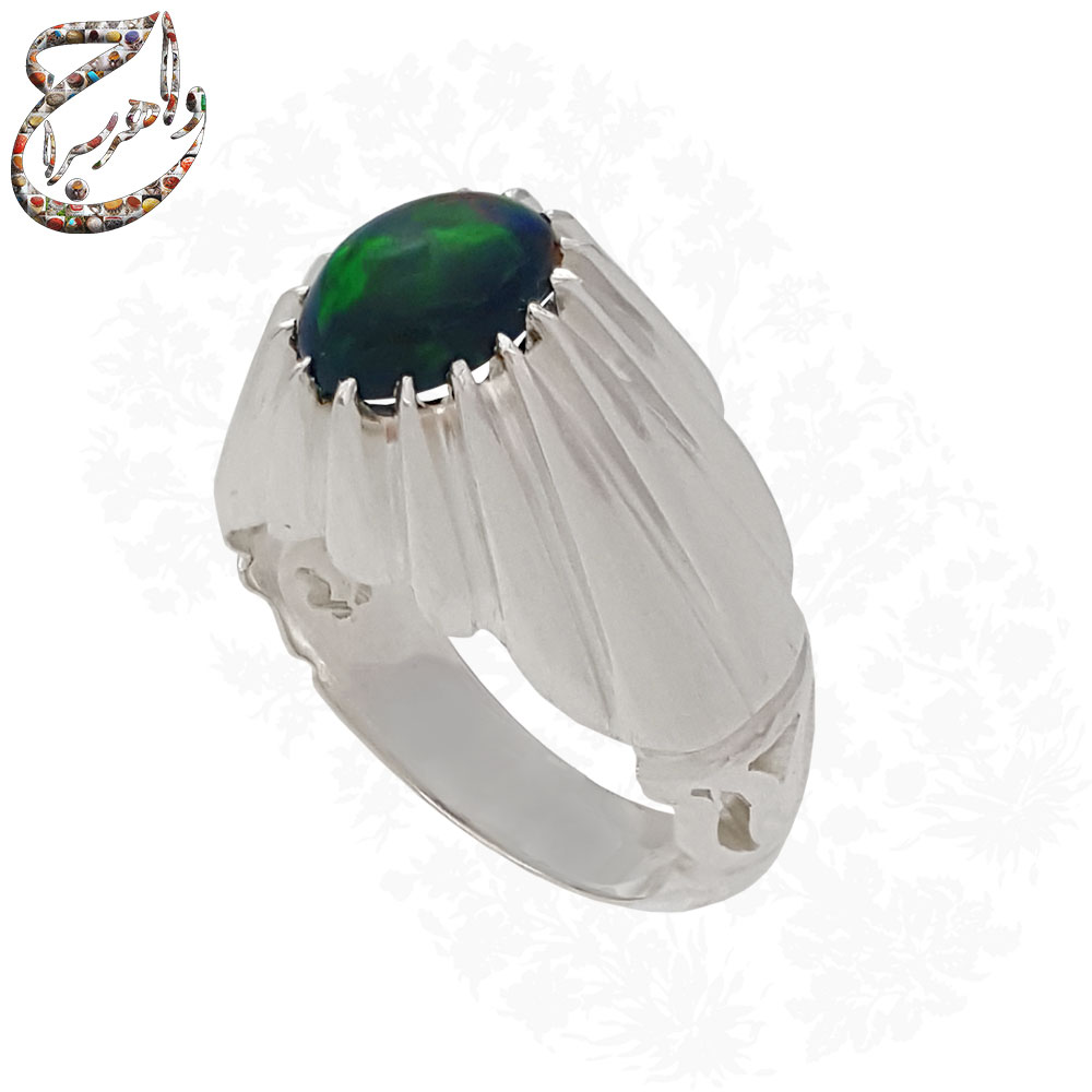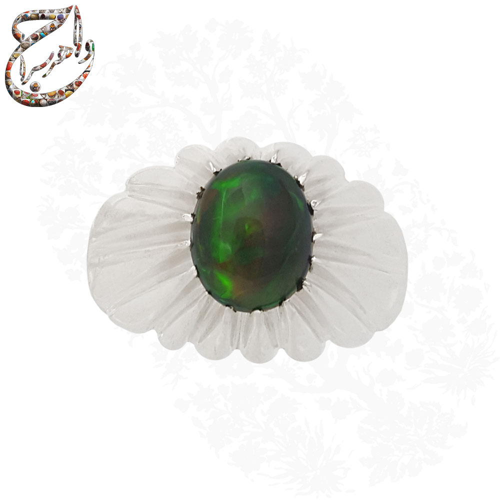 سنگ اوپال: سنگ به کار رفته در این انگشتر به دلیل زیبایی نوری و نادر بودن، ارزشی خاص و بیمانند دارد.
