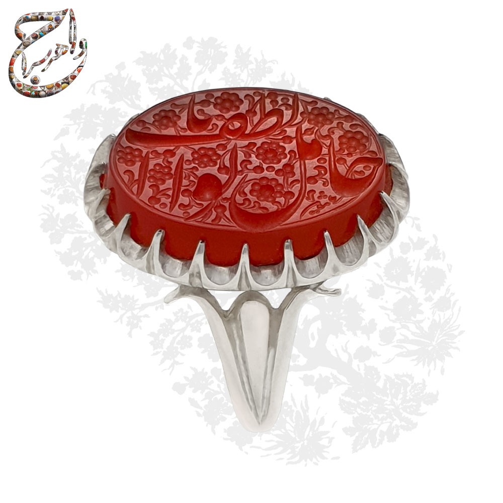 انگشتر عقیق سرخ خط متین با رکاب دستساز استاد لطفی