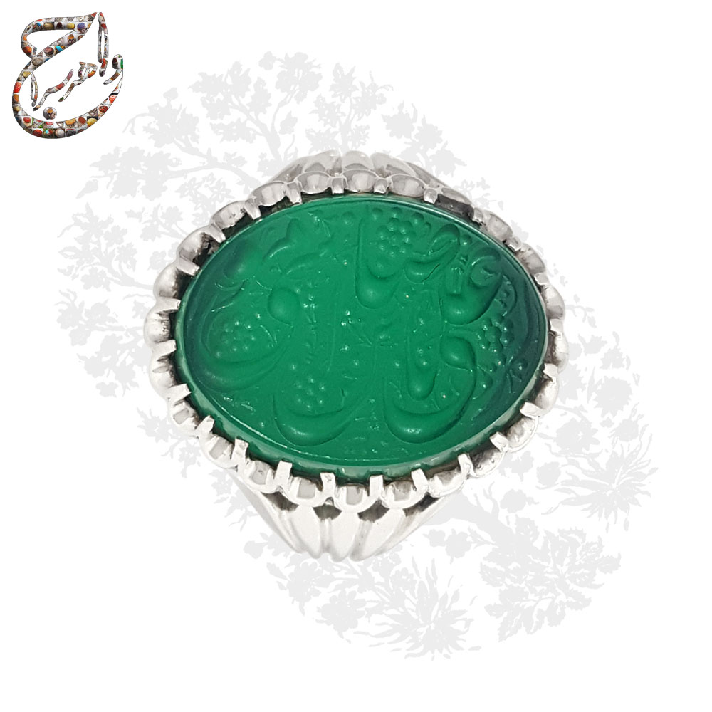 انگشتر عقیق سبز افریقایی خطی (یا علی بن موسی الرضا ع) با رکاب تهران کریمیa688jw