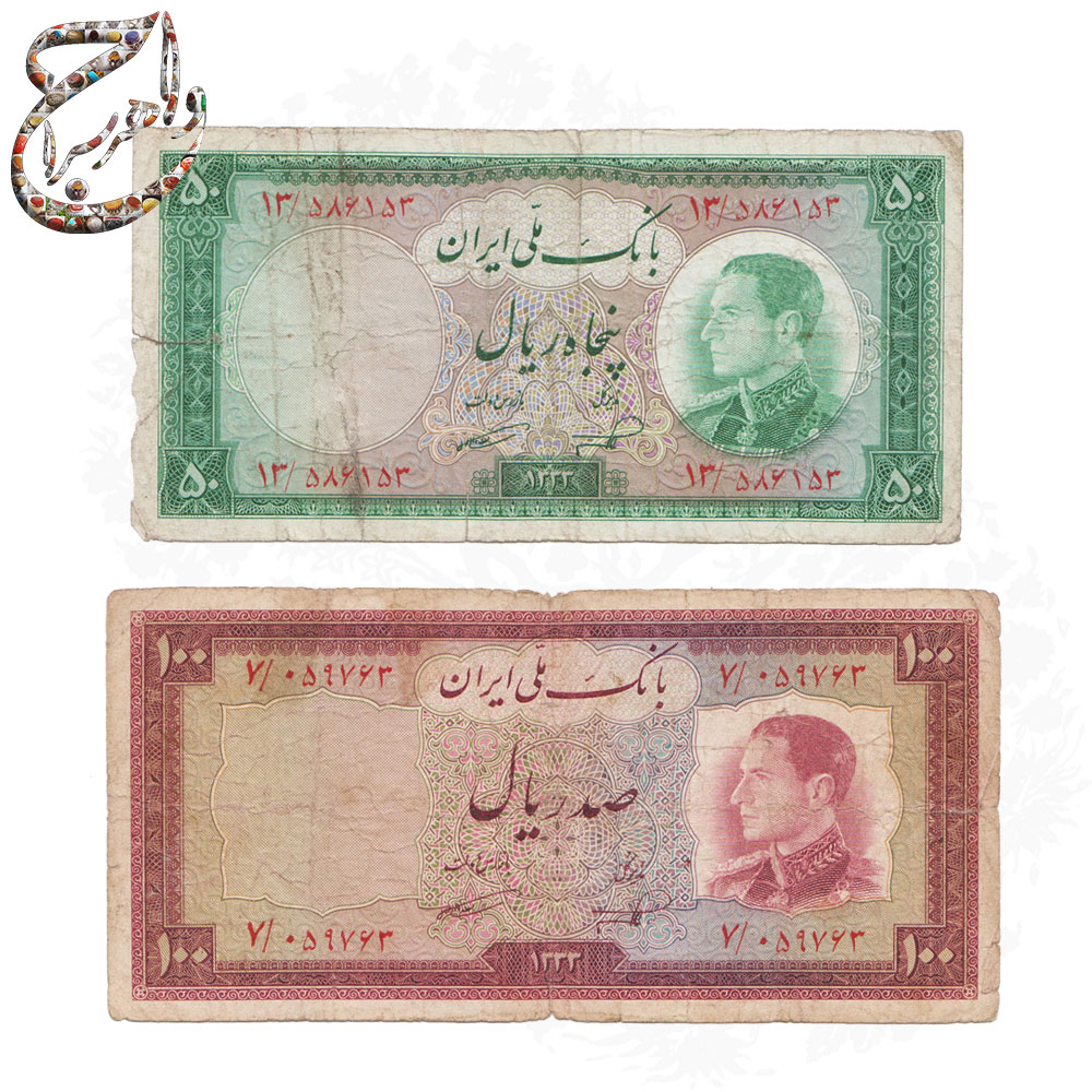 این مجموعه شامل دو اسکناس تاریخی مربوط به دوران پهلوی دوم با تاریخ 1333 هجری شمسی است. اسکناسهای موجود دارای ارزش 100 ریال و 50 ریال میباشند و طراحی ظریف و زیبایی را از این دوره تاریخی به نمایش میگذارند. تصویر محمدرضا شاه پهلوی بر روی هر دو اسکناس قابل مشاهده است، که نمادی از این دوره تاریخی است. این اسکناسها مناسب برای علاقهمندان به مجموعهداری، تاریخ ایران، و اشیای کلکسیونی با ارزش میباشند.