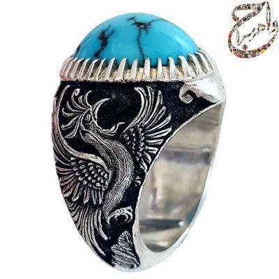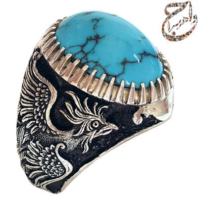 انگشتر مردانه فیروزه شجر نیشابور که با تراش دامله جلوه ای بی نظیر به این محصول بخشیده است.