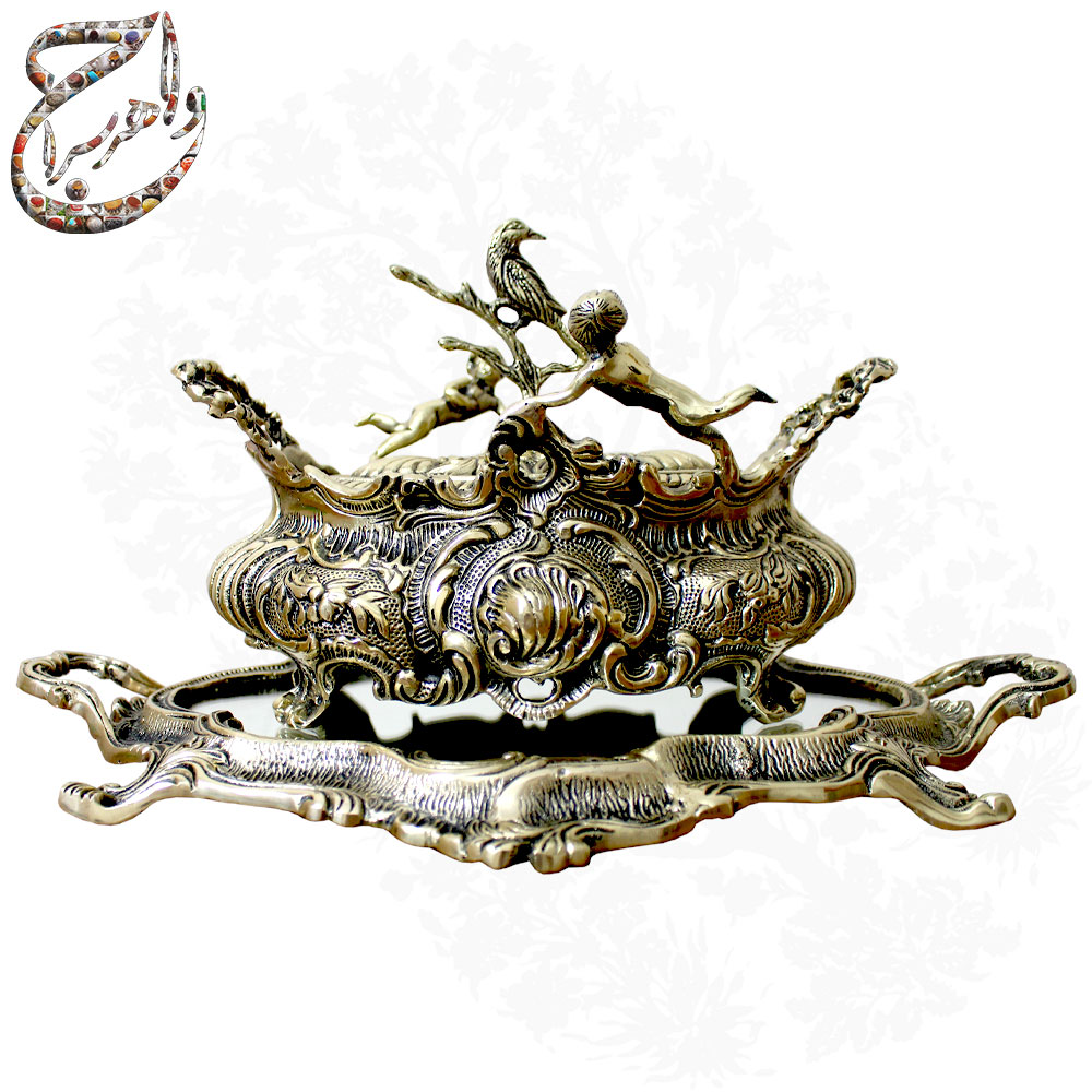 شکلات خوری برنجی دوقولو قلمزنی شدهbr008jw