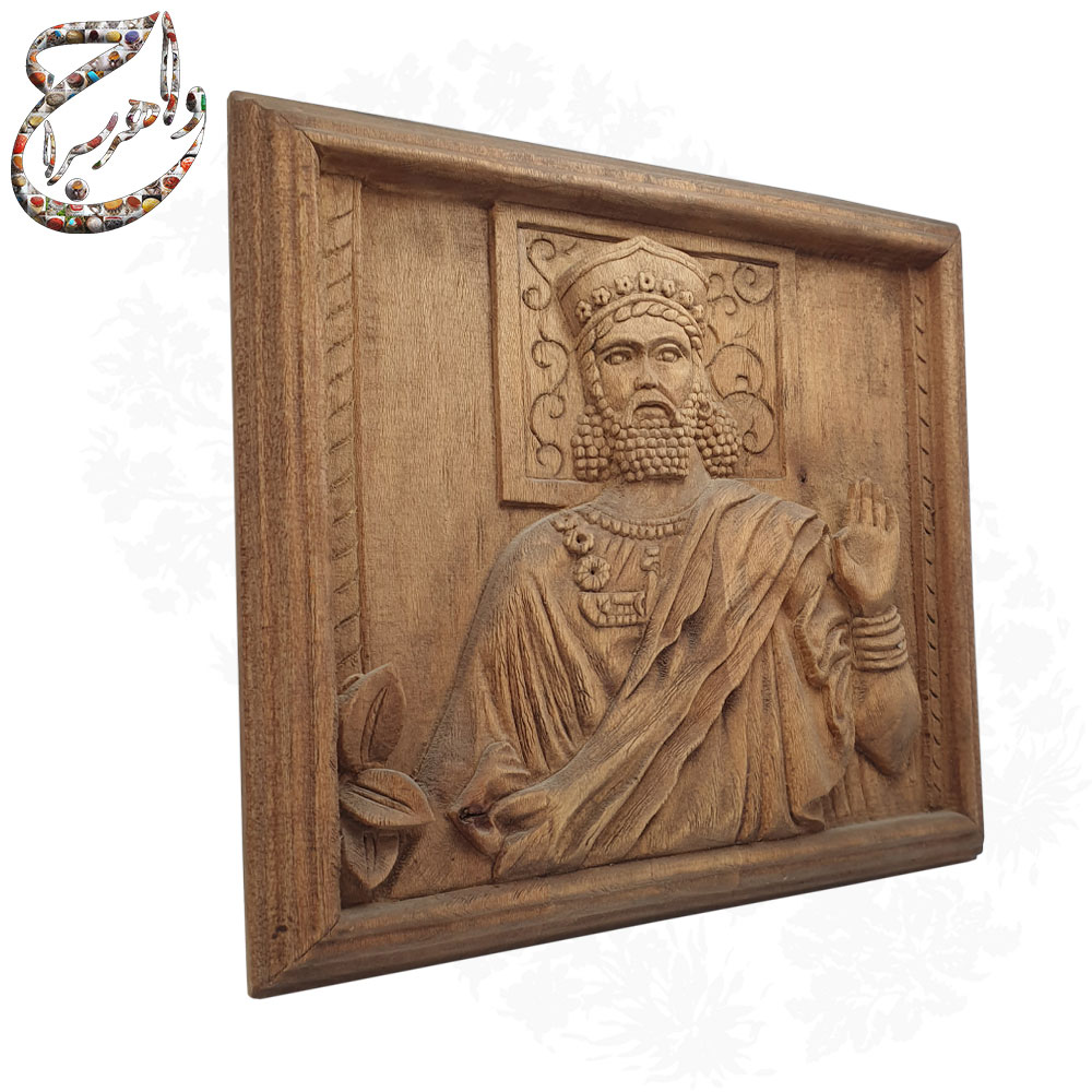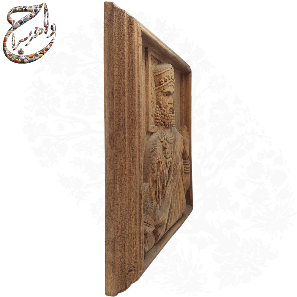 تابلو منبت کاری شده طرح تندیس زرتشت بر روی چوب درخت گردو بصورت سه بعدی در ابعاد 28 *28 سانتی متر قابل استفاده بعنوان تابلوی دیواری و رومیزی