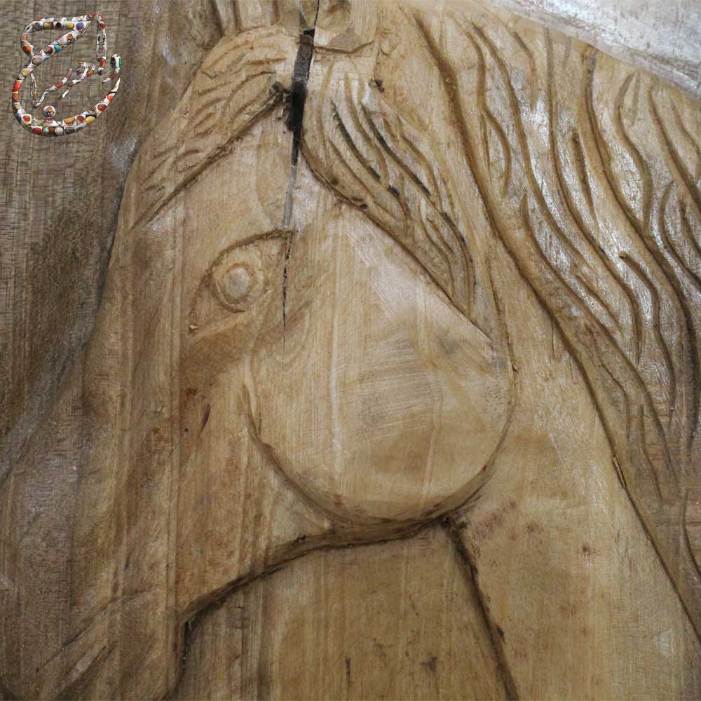 تابلو چوبی یکتکه منبت کاریشده طرح اسب – ساختهشده از چوب طبیعیch017jw