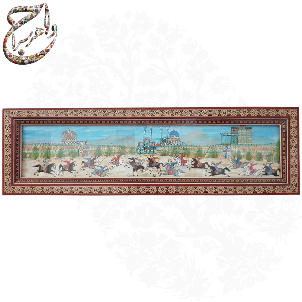 ساعت دیواری مستطیلا مزین به هنر میناکاری روی مس و خاتم کاری ممتاز روی چوب