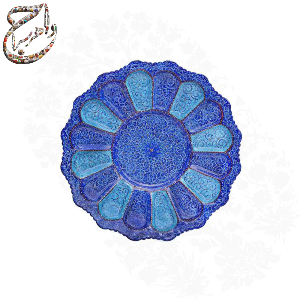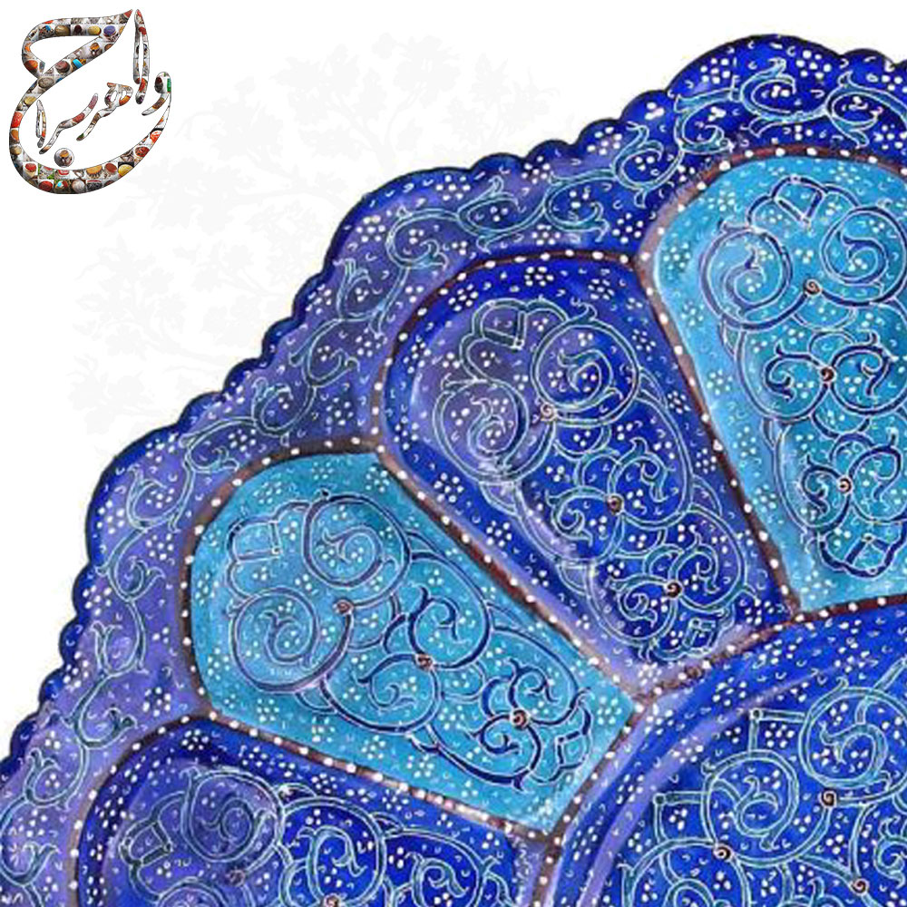 کاسه بشقاب میناکاری سایز 16 میناکاری طرح اسلیمی ختایی از جنس مس با نقوش دائمی با طراحی اسلیمی و پرداز . جنس این محصول از مس و رنگ های باکیفیت میباشد و در دمای 800 درجه در کوره حرارت دیده به همین دلیل رنگ محصول ثابت و بدون تغییر است .