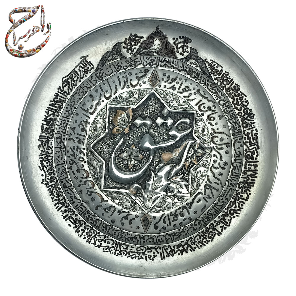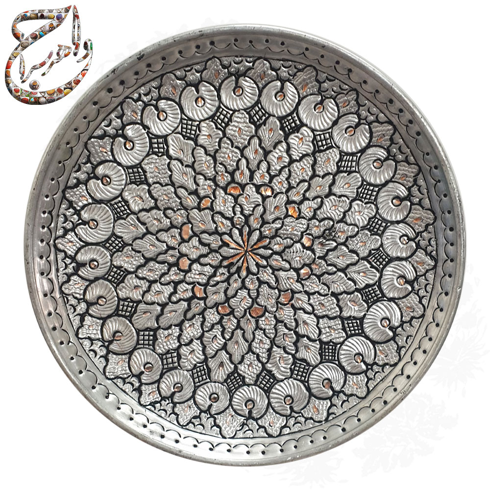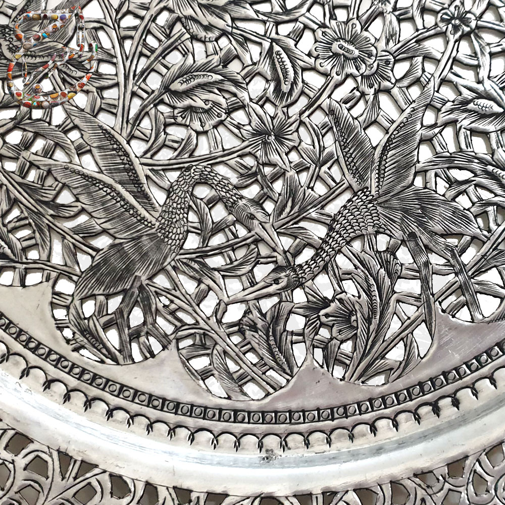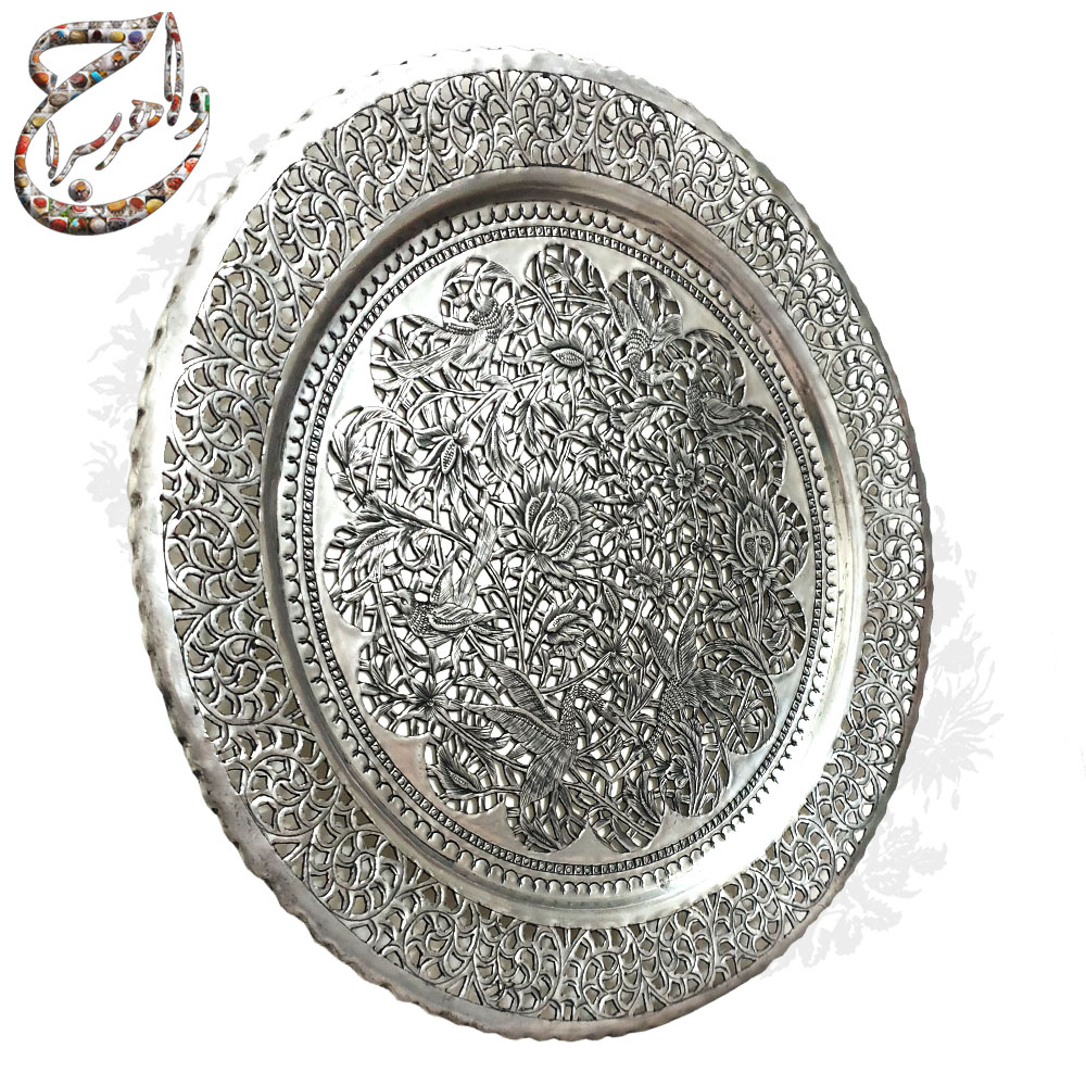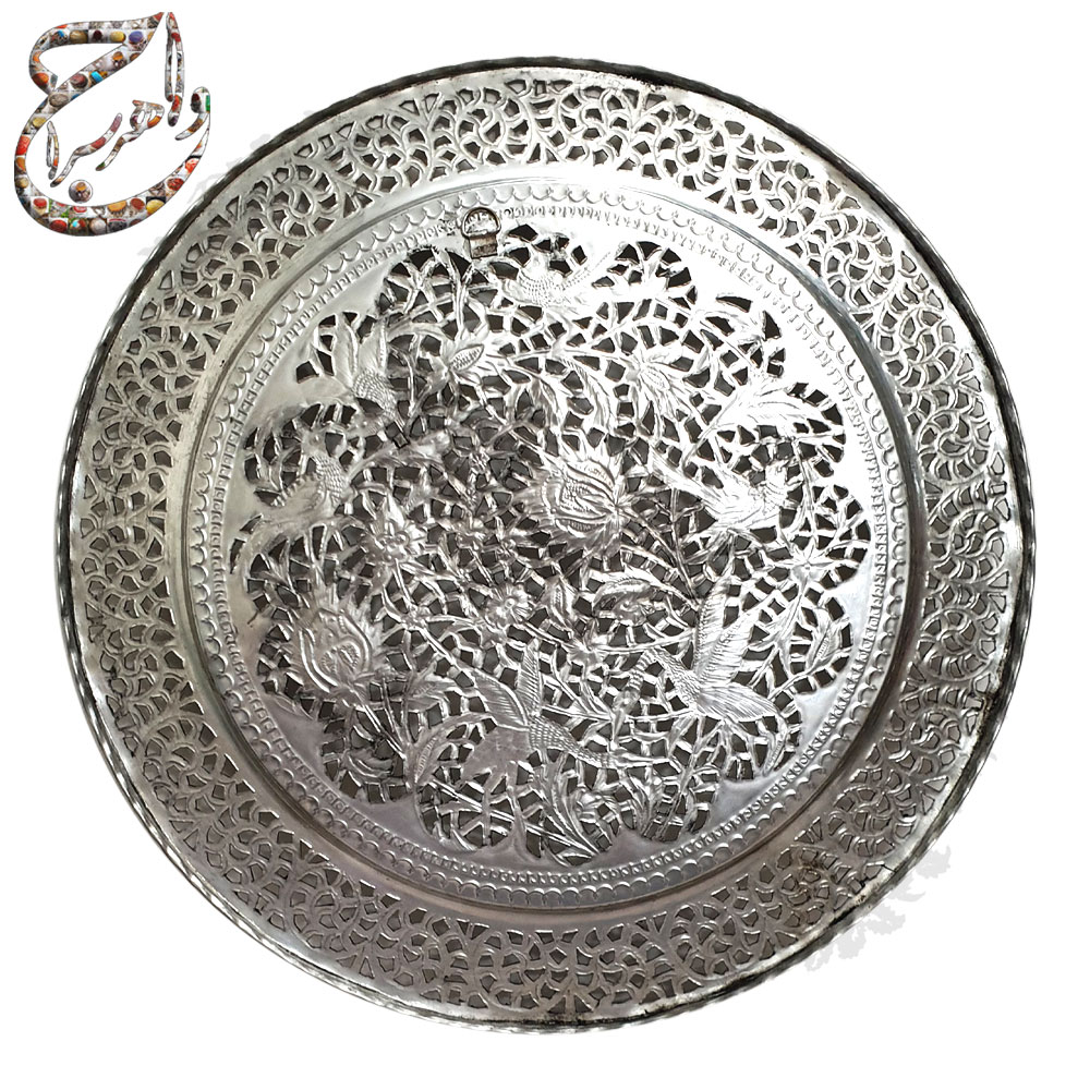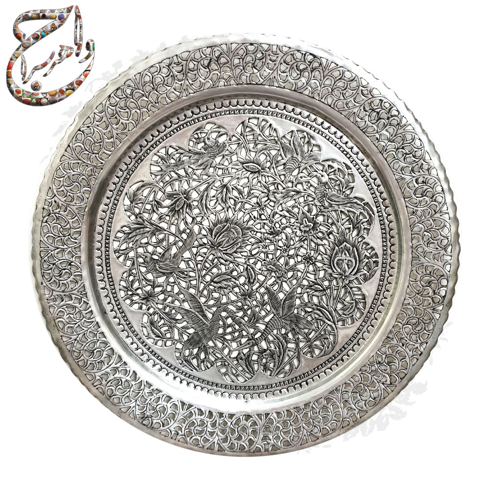سینی مسی قلمزنی شبکه گل و مرغmq003jw