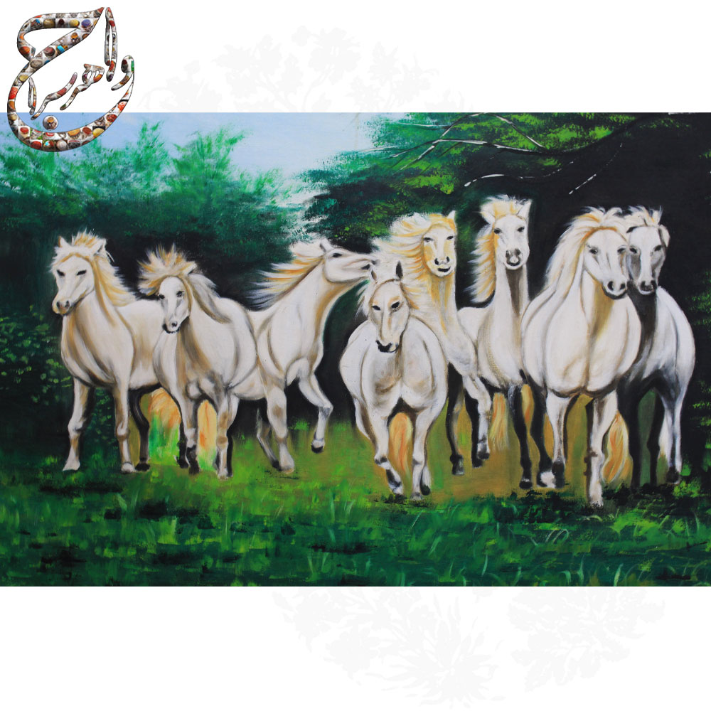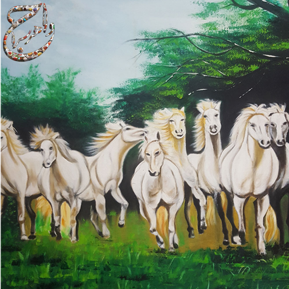نقاشی اسب های وحشی با تکنیک رنگ روغن روی بوم نقاشی ، نقاشی شده به سبک رئال اثر استاد ابراهیم پور به همراه امضاء ایشان است . این اثر تا یک سال ضمانت دارد و در این مدت اگر به هر دلیلی دچار اشکال شود توسط استاد ابراهیم پور ترمیم خواهد شد .
